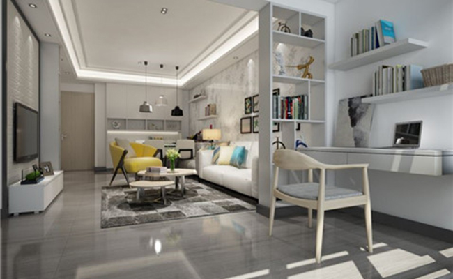 整個客廳朝著簡潔明快的色調走,沙發選擇大象灰軟皮和墻面的水灰色相得益彰,背景墻拋棄了一些傳統概念中背景設計手法。選用了一整面木飾面作為背景,配合現代黑色電視柜。打破常規的美式風格,給空間賦予新的感官視覺。