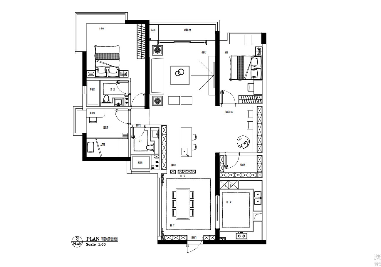 長(zhǎng)輩房與收納間門(mén)口沒(méi)有浪費(fèi),設(shè)計(jì)成孩子自己的學(xué)習(xí)玩耍區(qū),整排的儲(chǔ)物柜滿(mǎn)足孩子的收納需求,開(kāi)放的區(qū)域也能體驗(yàn)溫馨的親子時(shí)光。