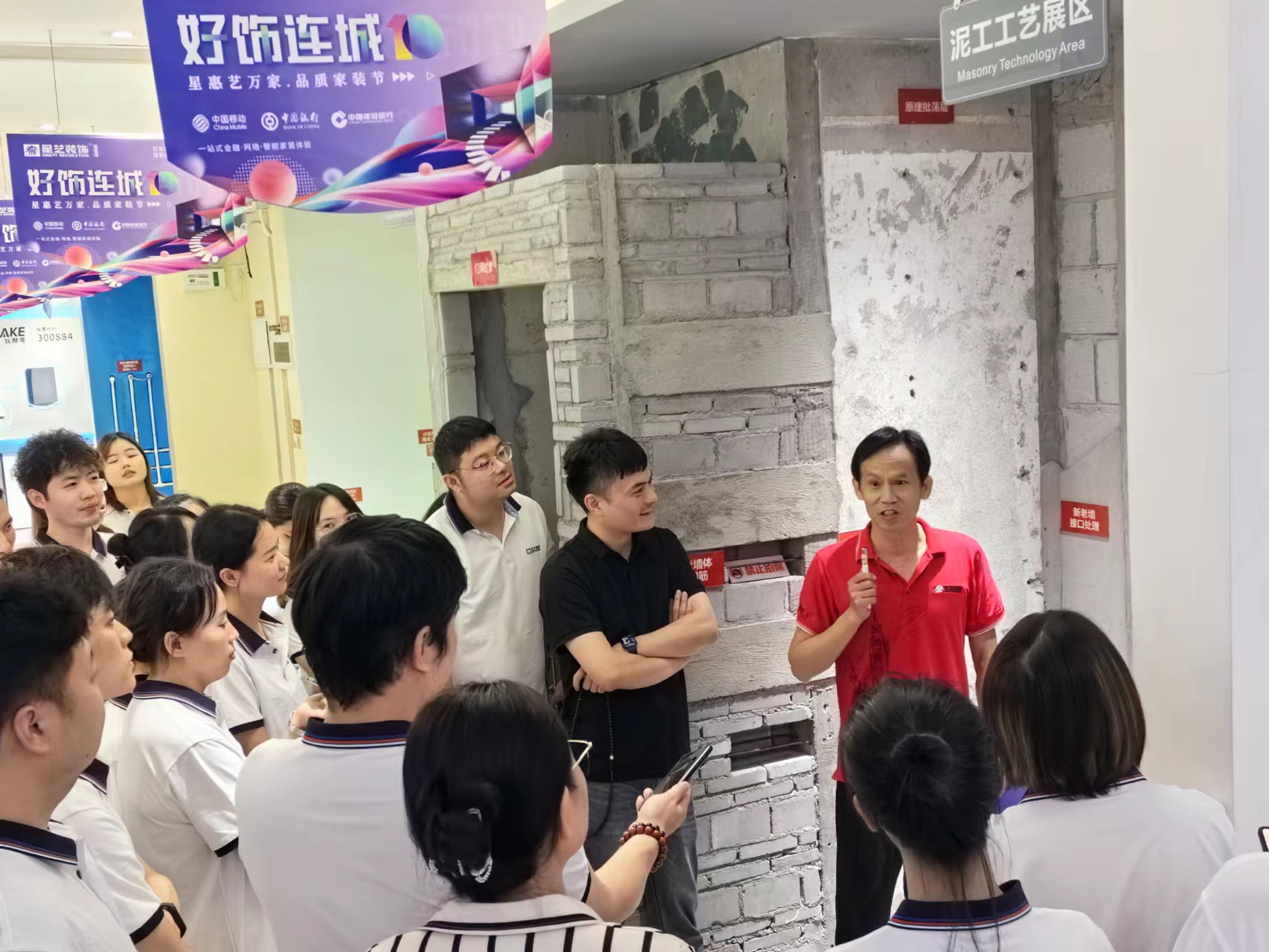 余經(jīng)理借助星藝展廳的工藝展示,介紹了墻面和吊頂工藝流程+衛(wèi)生間沉箱施工。