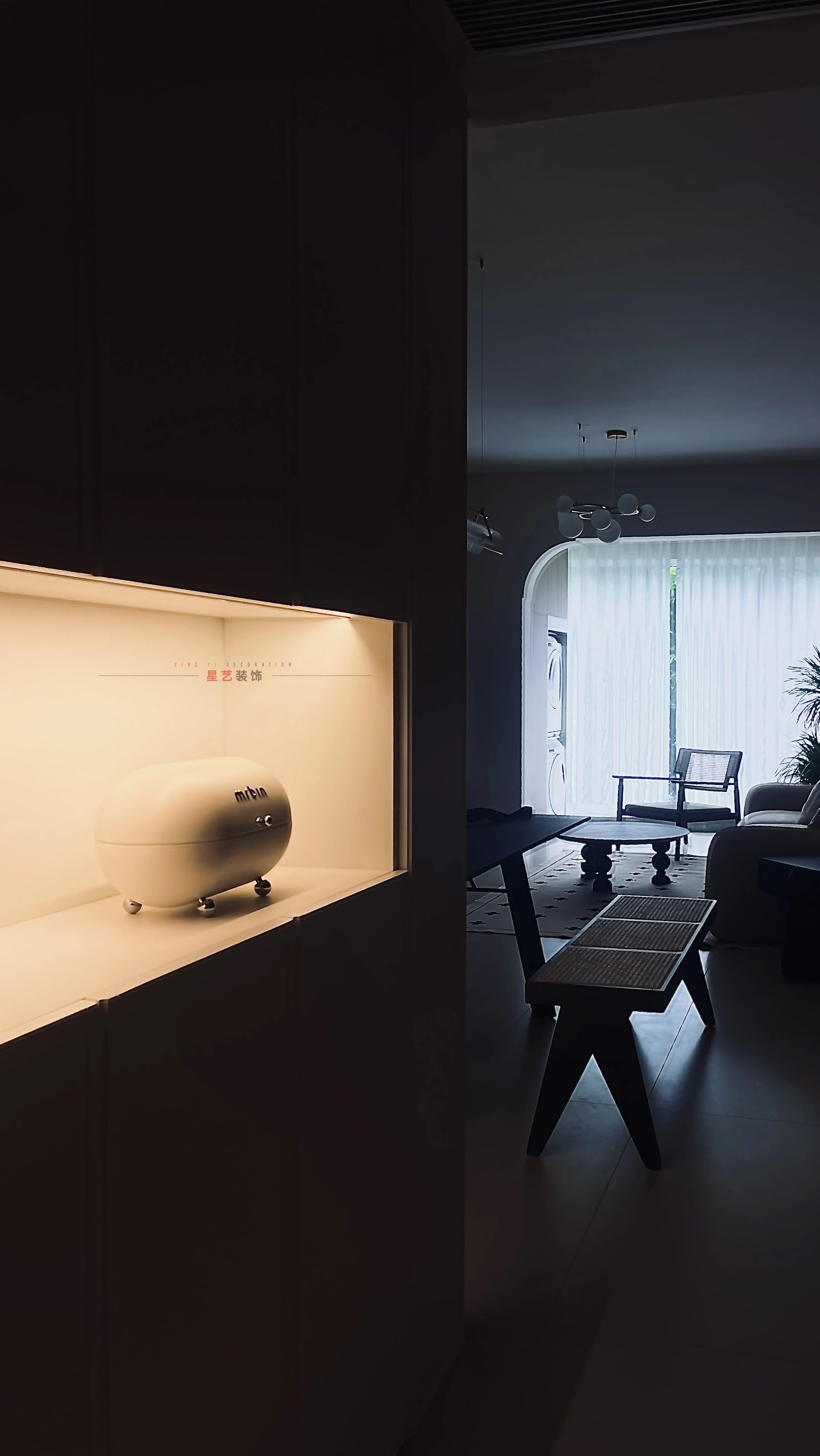 玄關(guān)柜上暖黃色的燈,與窗外模糊的暮色形成對(duì)比,這是一天最溫柔的時(shí)刻,光讓生活浮起來了。