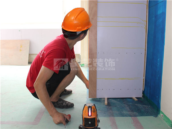 衣柜固定應用紅外線水平儀調(diào)平,再用木楔釘入確保穩(wěn)固。