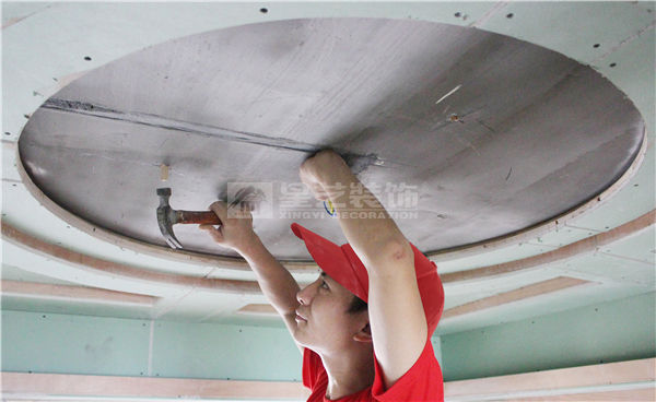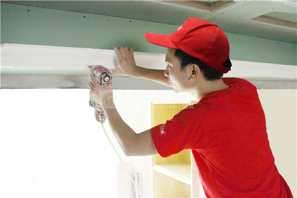 2、天花陰角修正:在原頂找平后,陰角彈線,用專用陰角抺子修正。